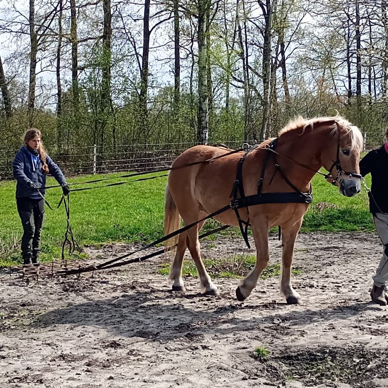 Außerdem haben wir das aller erste Mal mit unserem Haflinger den Acker bearbeitet.